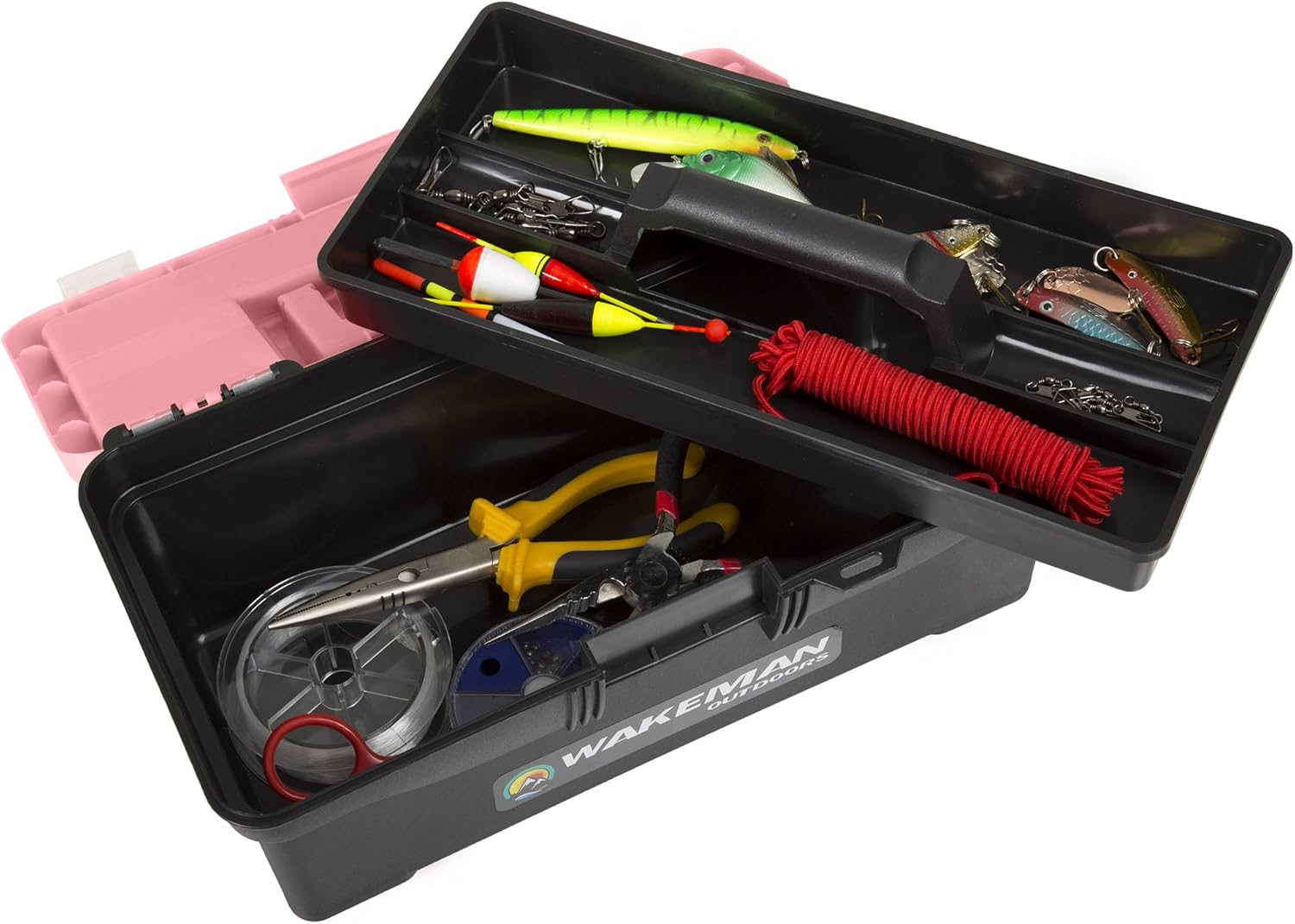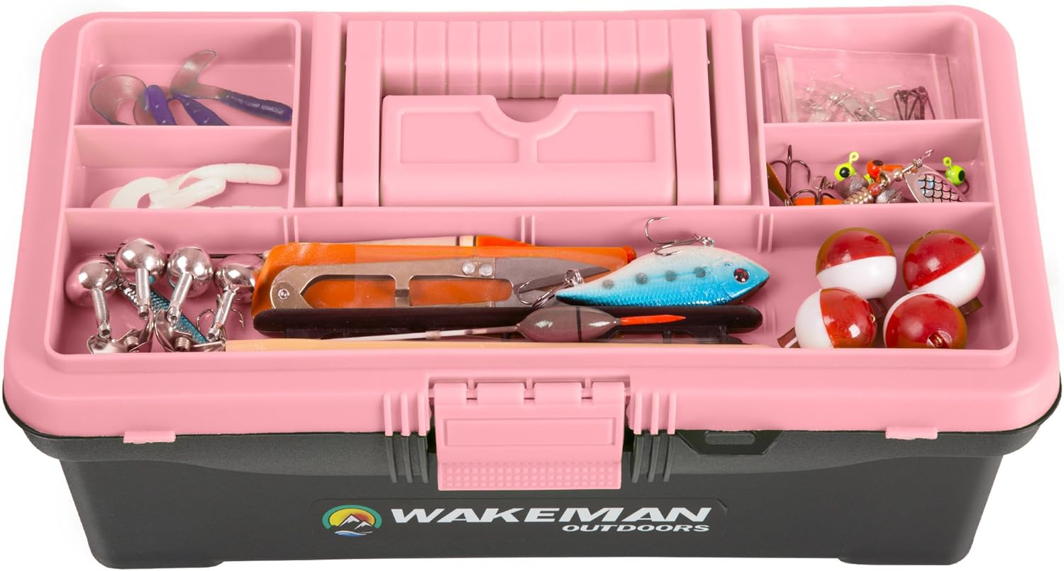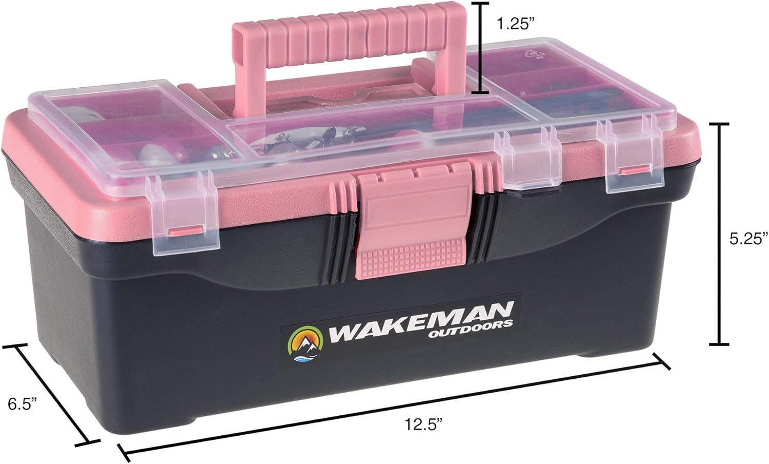Wakeman 55-Piece Fishing Tackle Set – Tackle Box Includes Sinkers, Hooks, Lures, Bobbers, Swivels, Fishing Line, and More – Fishing Gear (Pink)