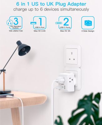 Introducing the 2 Pack US to UK Ireland Travel Plug Adapter, a must-have accessory for your international travels! This Type G Power Plug Adapter is designed to effortlessly convert your US devices for use in the UK, Ireland, England, London, Scotland, Qatar, Hong Kong, and more. Featuring 3 outlets and 3 USB ports (including 2…