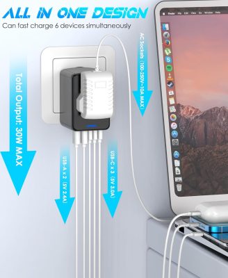Introducing the Universal Travel Adapter, your perfect companion for seamless connectivity during your international adventures. This versatile 6.0A 30W International Power Adapter is designed to keep all your devices charged and ready to go wherever you are in the world. Equipped with 5 USB C/A Ports and AC Outlets, this travel adapter is compatible with…